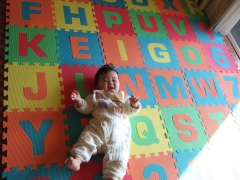 頭をぶつけても痛くないための対策として、マットを敷いてみました。
